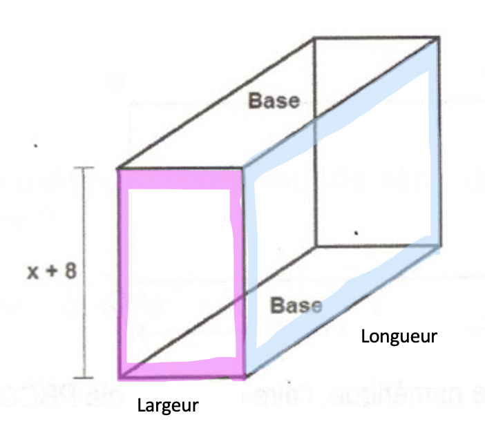 En connaissant l'expression représentant le volume du prisme ainsi que la hauteur de sa base, il est possible de diviser le polynôme par le binôme pour obtenir l'expression représentant la base du prisme.