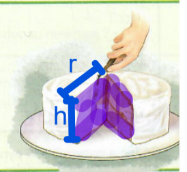 Tiens compte du 7/8 de l'aire de la base (on a enlevé 1/8) et du 7/8 de l'aire latérale (on a aussi enlevé 1/8) + deux faces internes du gâteau pour l'aire latérale, où l'aire est égale à la hauteur mutiplié par le rayon.