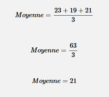 Pour calculer une moyenne, il faut suivre la formule suivante :
