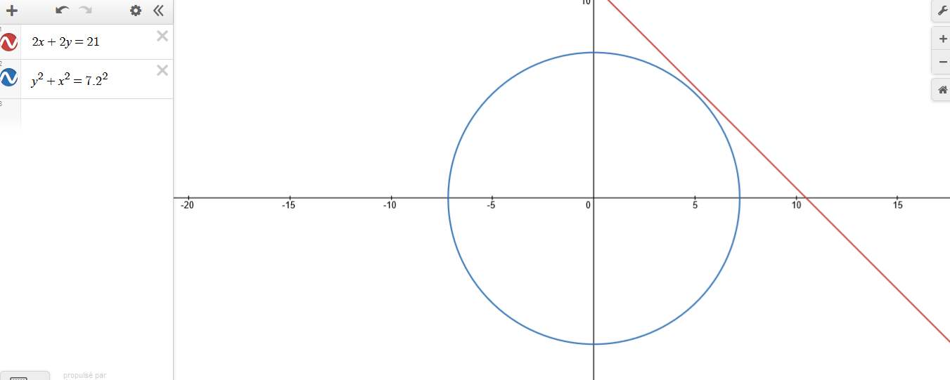 Tel qu'on peut le constater sur la figure, il n'y a pas de point d'intersection entre le cercle et la droite.