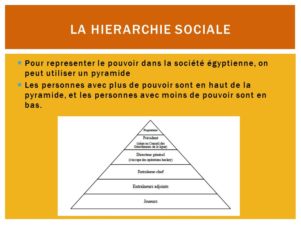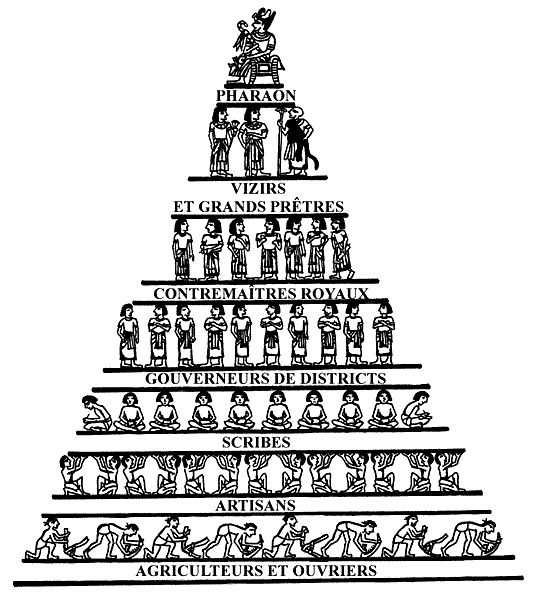 Voici une pyramide hiérarchique de l'Égypte antique pour t'aider à figurer :
