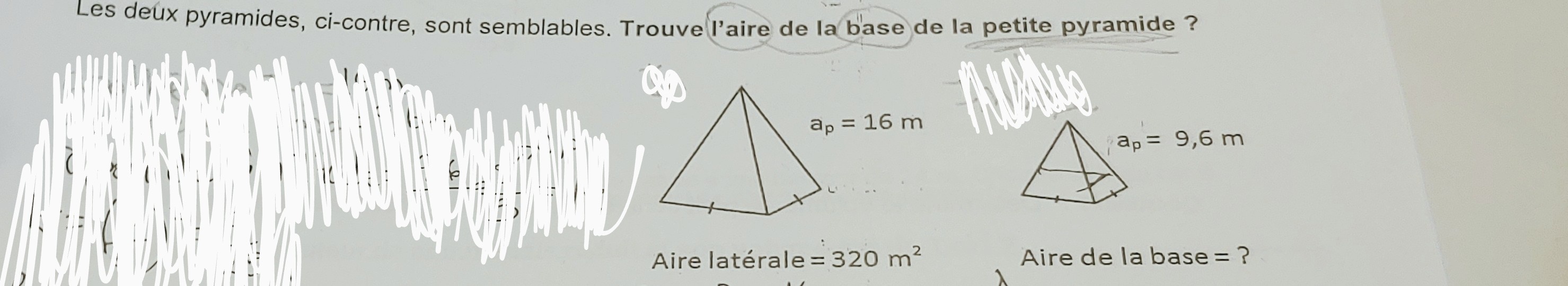 Par la suite, connaissant k, trouve k^2 pour pouvoir trouver l'aire latérale de la petite pyramide.