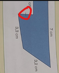 On te donne le périmètre de la forme, soit de 18,3 cm. On sait que le périmètre représente la somme de tous les côtés de la forme. En d'autres mots, lorsqu'on additionne tous les côtés, on doit obtenir 18,3 cm.