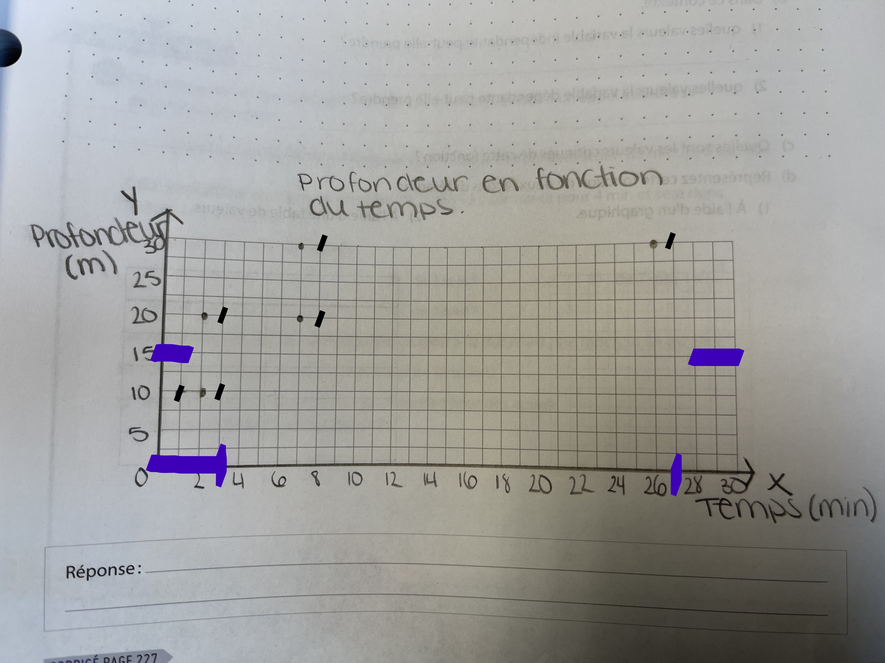 Le graphique inclus dans ton problème sert à déterminer le temps que la plongeuse restera en décompression après avoir déterminé elle est restée combien de temps sous l'eau. Si tu calcules que la durée totale passée sous l'eau avant le palier de décompression était de 30 min par exemple, elle devra faire une décompression de 9 min selon le graphique avant de remonter à la surface.