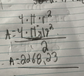 Tu as calculé l'aire de 4 cercles. Or, nous voulons calculer l'aire de 4 demi-cercles, 4 moitiés de cercles, et non 4 cercles complets. Tu dois donc diviser par deux l'aire que tu as trouvée, ou calculer l'aire de 2 cercles complets (4 moitiés de cercles équivalent à 2 cercles complets).
