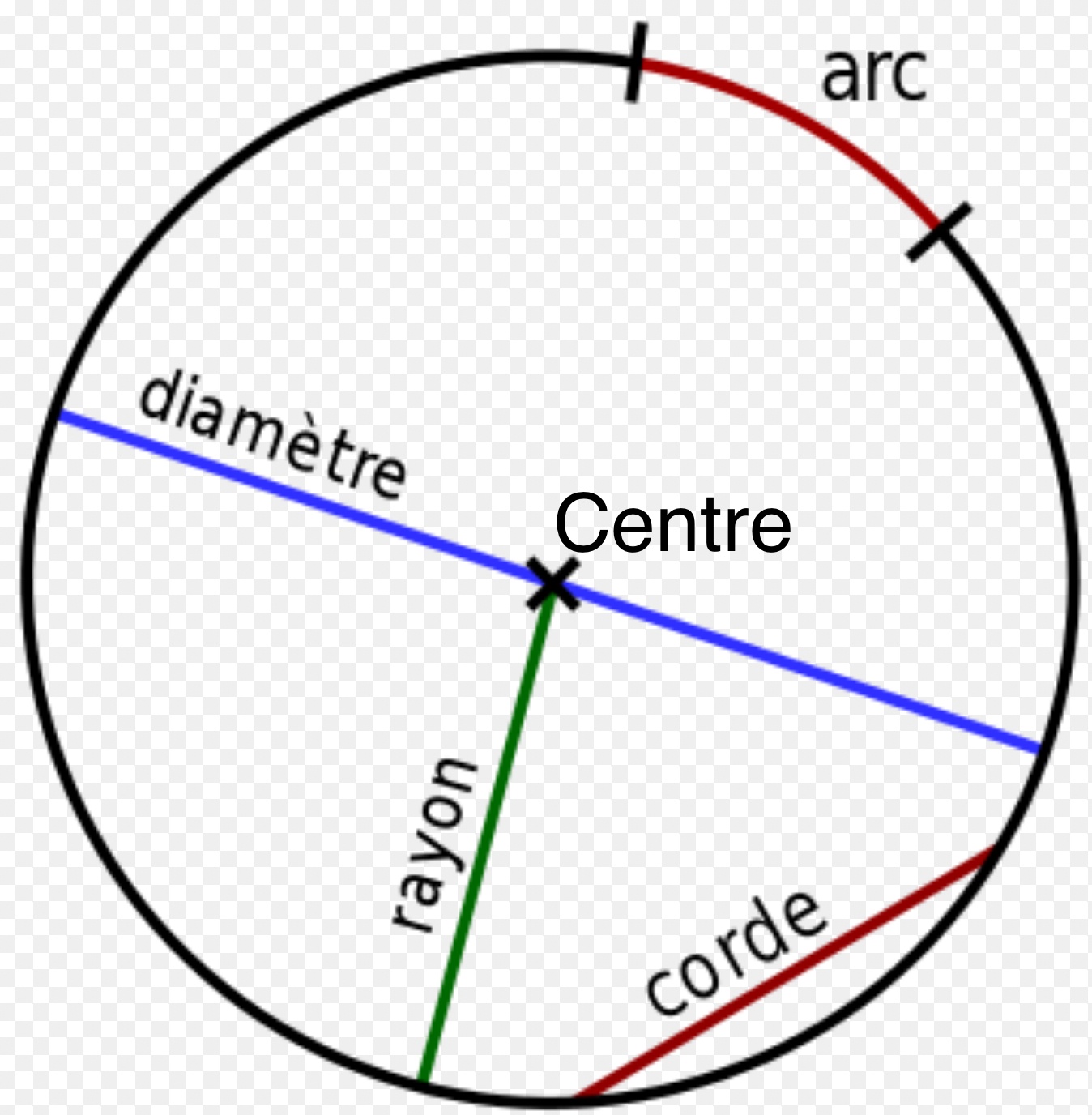 Il y a la circonférence, le diamètre, le centre, le rayon, l’arc et la corde.