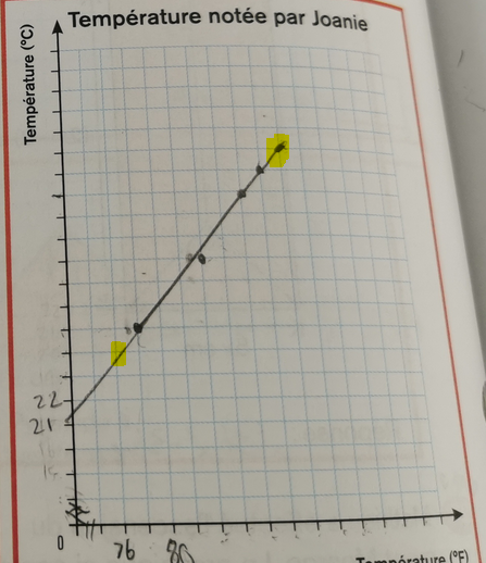 Ensuite, trouve ta règle comme tu avais fait (mais en calculant b à l'aide d'un point et non en la prenant sur le graphique).