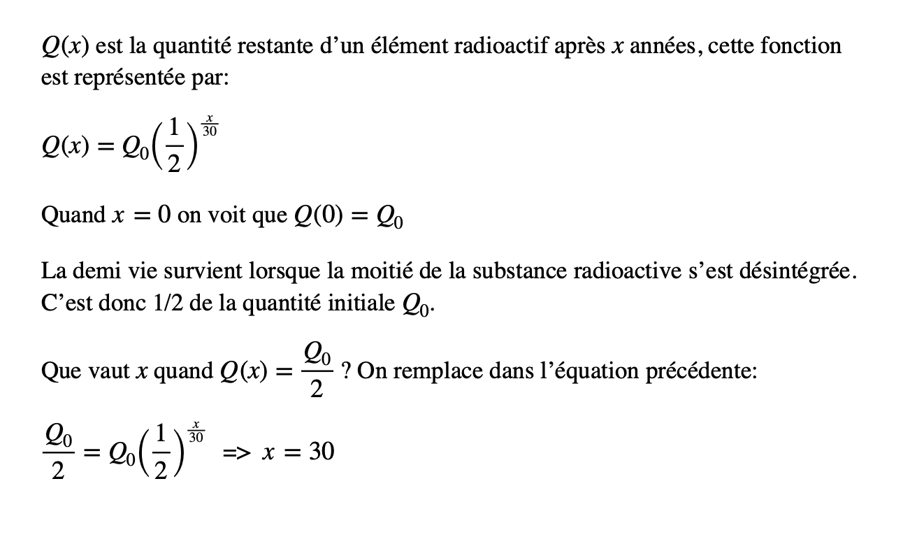 On a \[ Q_0\cdot \frac{1}{2}=Q_0\cdot \left (\frac{1}{2} \right )^{\frac{x}{30}} \]