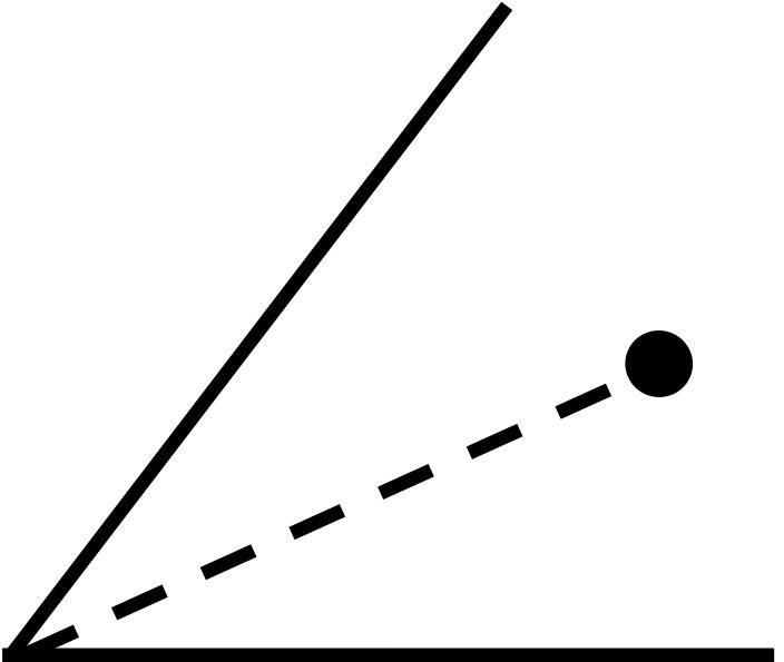 La ligne pointillée représente la bissectrice et les deux traits continus, les miroirs.