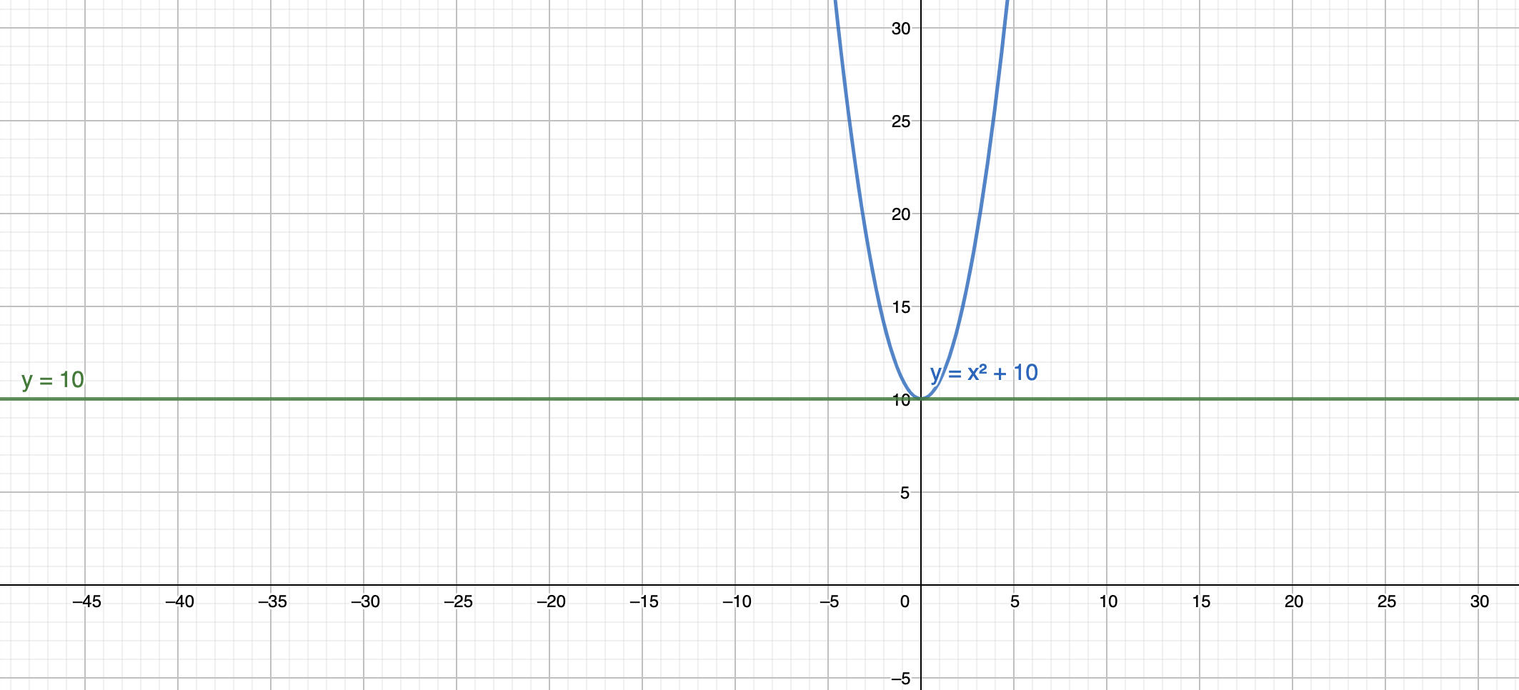 Dans cette situation, nous avons une fonction constante de y = n ainsi qu'une parabole dont le sommet est centré au point (0,n).