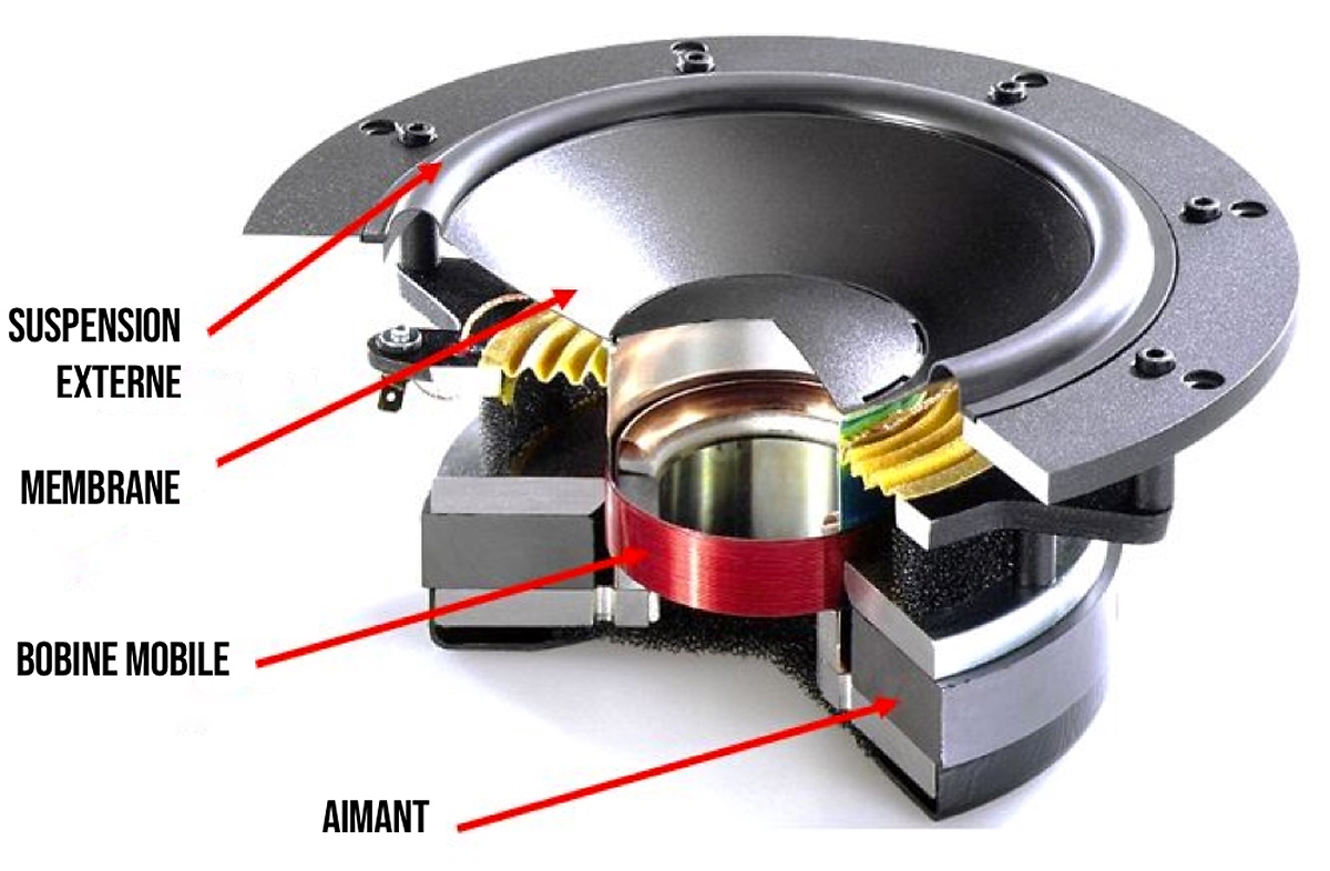 Si on prend l'exemple d'un haut parleur, on trouve un schéma suivant :