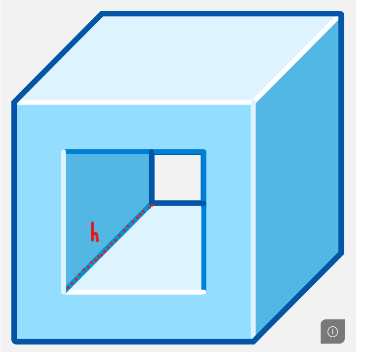 Indice! La troisième dimension du prisme enlevé correspond à la mesure de l'arête du cube!
