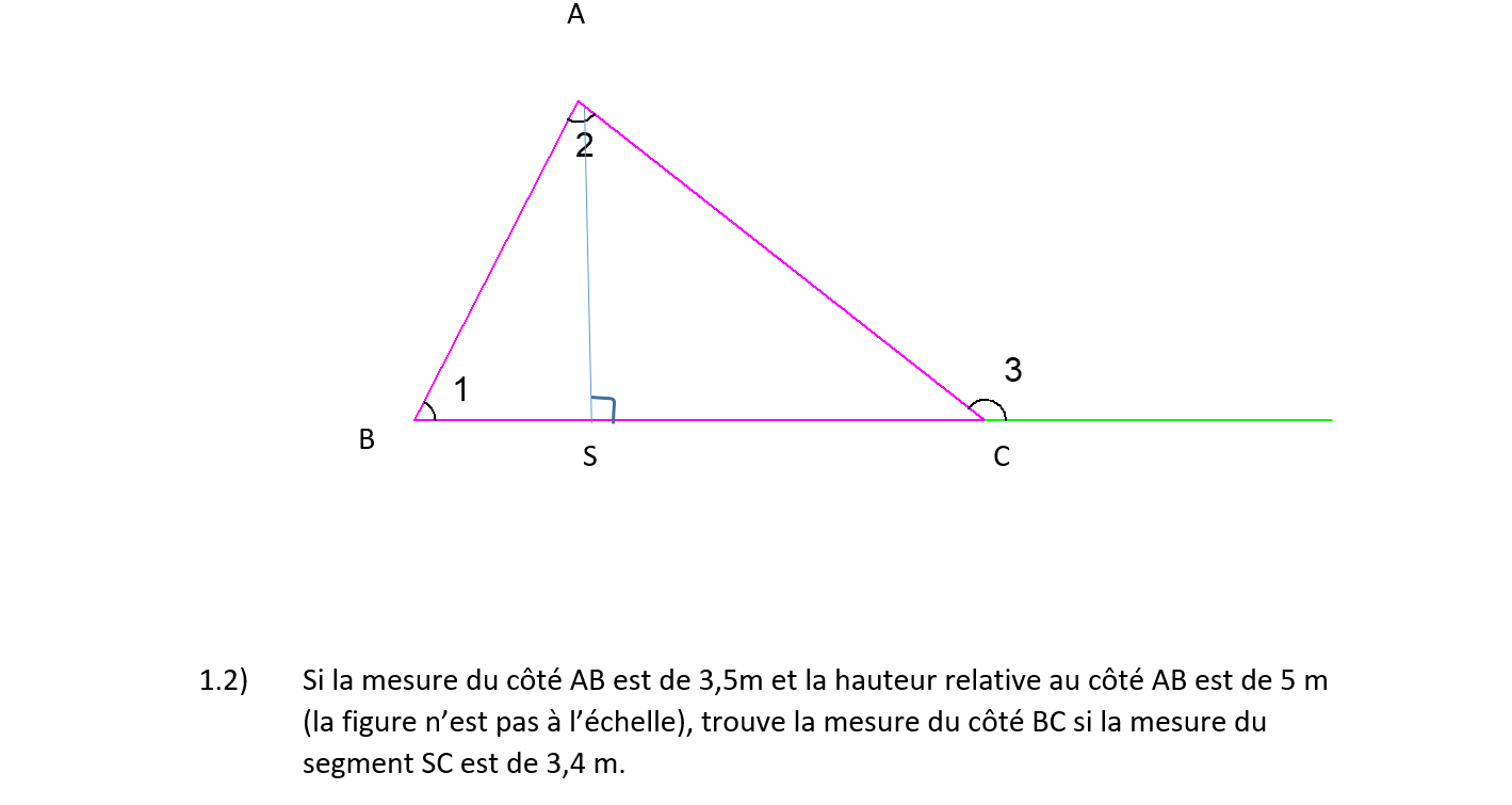 À l’aide des informations données dans le problème, tu devrais être en mesure de trouver la longueur du segment BC en utilisant le théorème de Pythagore et en faisant une addition.