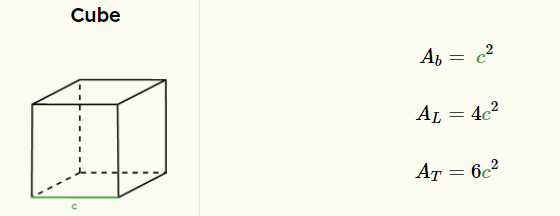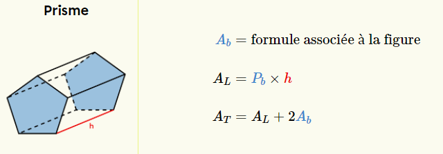 Tu dois calculer l'aire du cube et du prisme à l'aide des formules suivantes :