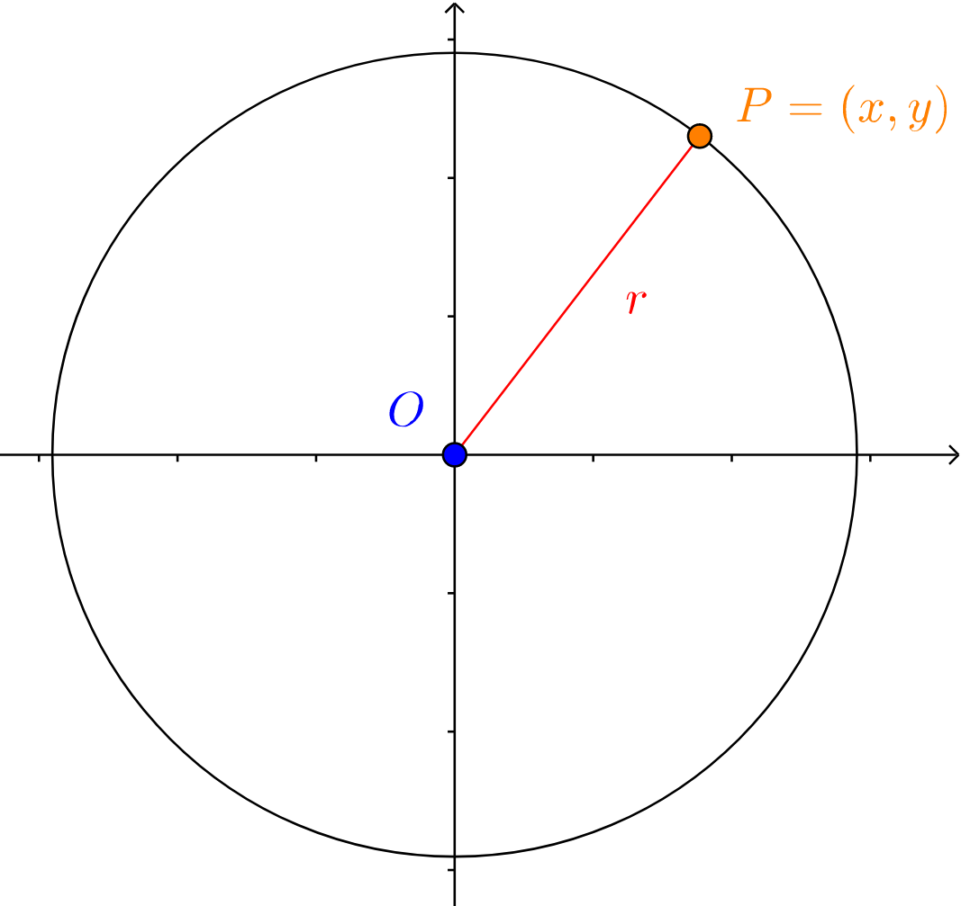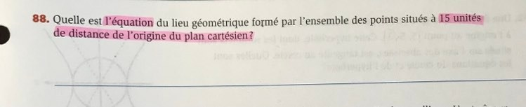 Si on dessine tous les points situés à 15 unités de distance du point (0,0), on obtient un cercle de rayon 15.