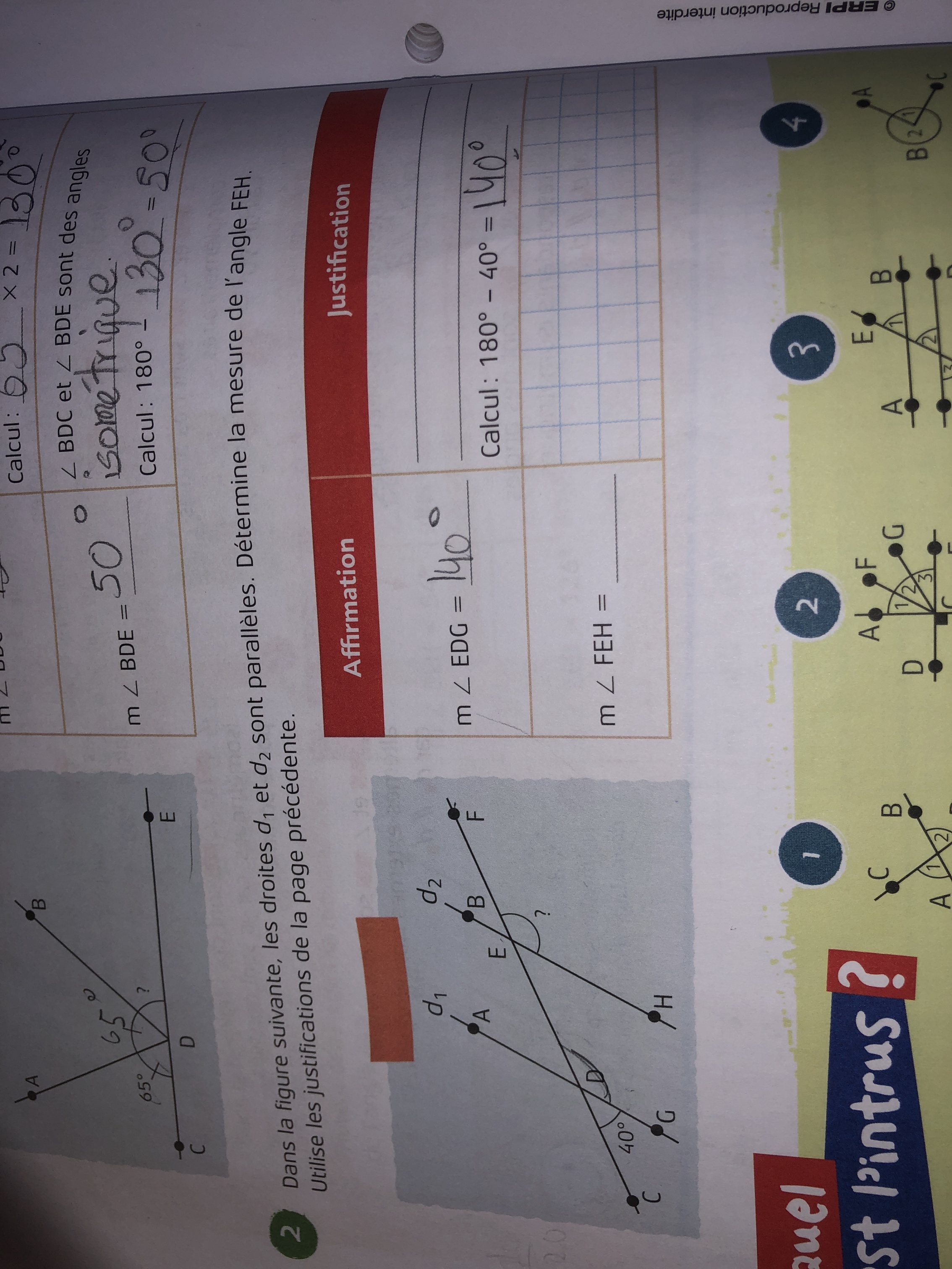 Une fois cela fait, tu peux remarquer que GDE et HEF sont égaux, car ils sont correspondants.