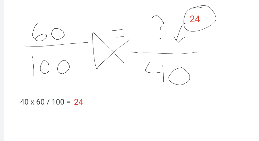 Tu vas faire ton produit croisé : 40 x 60 / 100 = 24 !