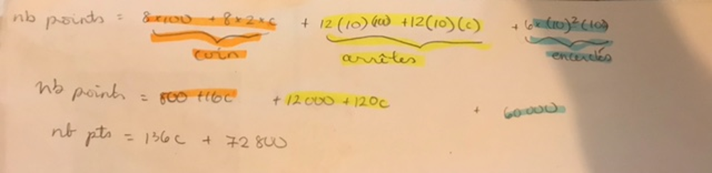 Les encerclés fournissent une face chacun. Alors, on ajoute 10*10*6 faces de 100.