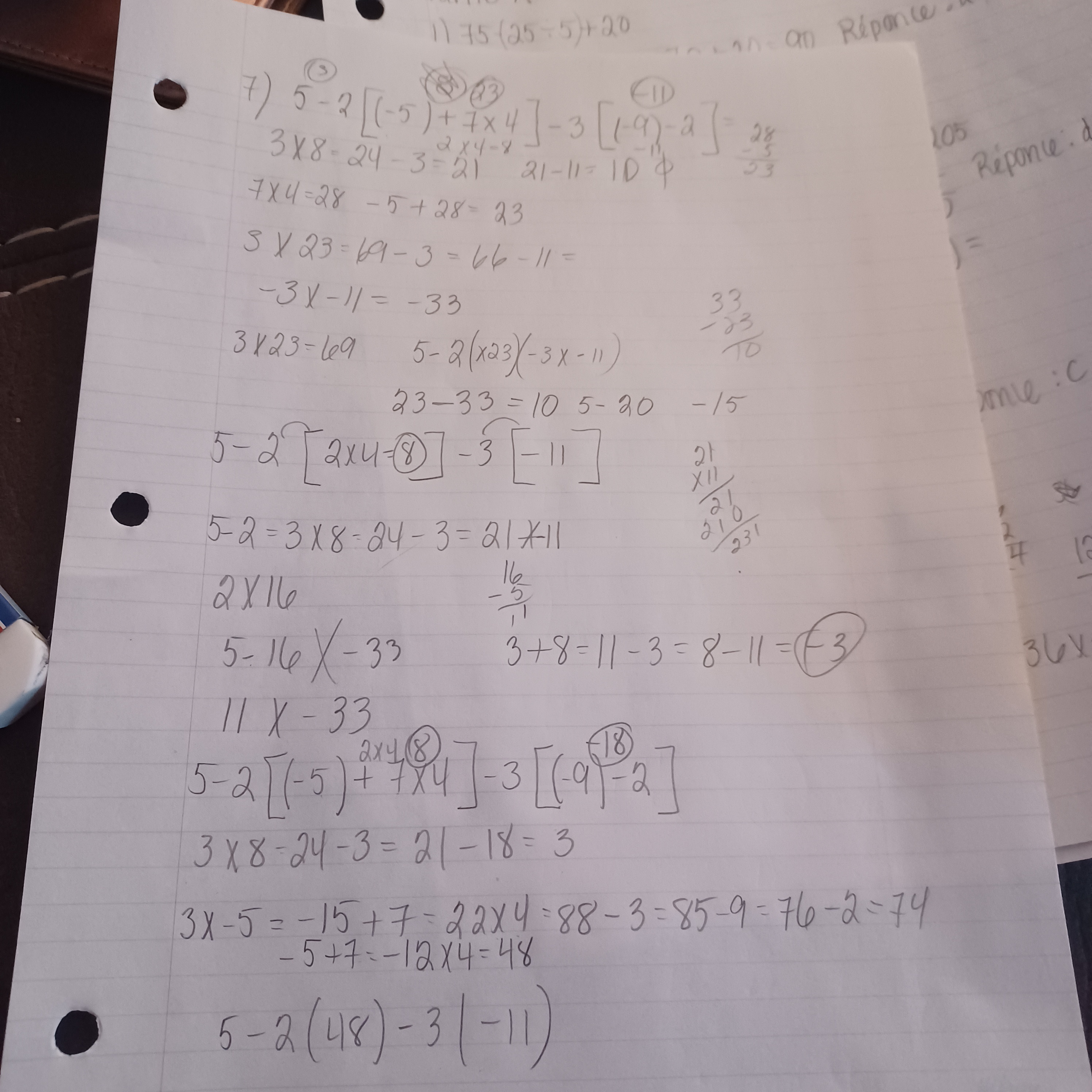 Je crois que revoir cette première étape de tes calculs pourrait grandement t’aider, car tu sembles plutôt bien comprendre comment fonctionne la priorité des opérations de façon générale. https://www.alloprof.qc.ca/fr/eleves/bv/mathematiques/la-priorite-des-operations-m1061