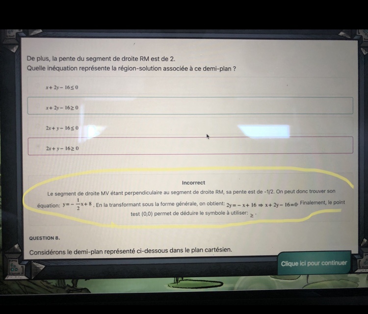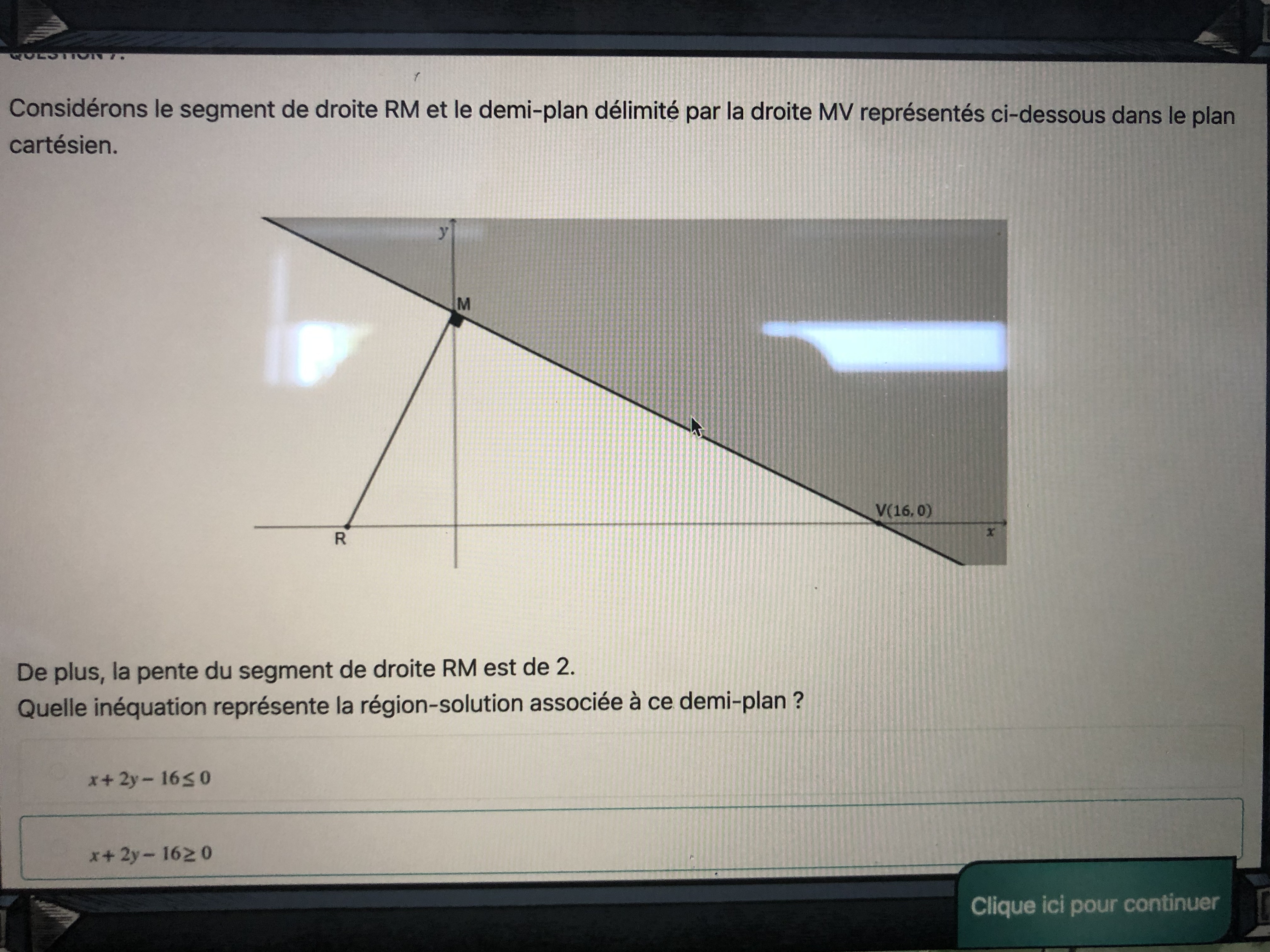 et 0 + 2.0 - 16 = -16 ≤ 0 donc c'est l'autre demi-plan qu'il faut choisir!