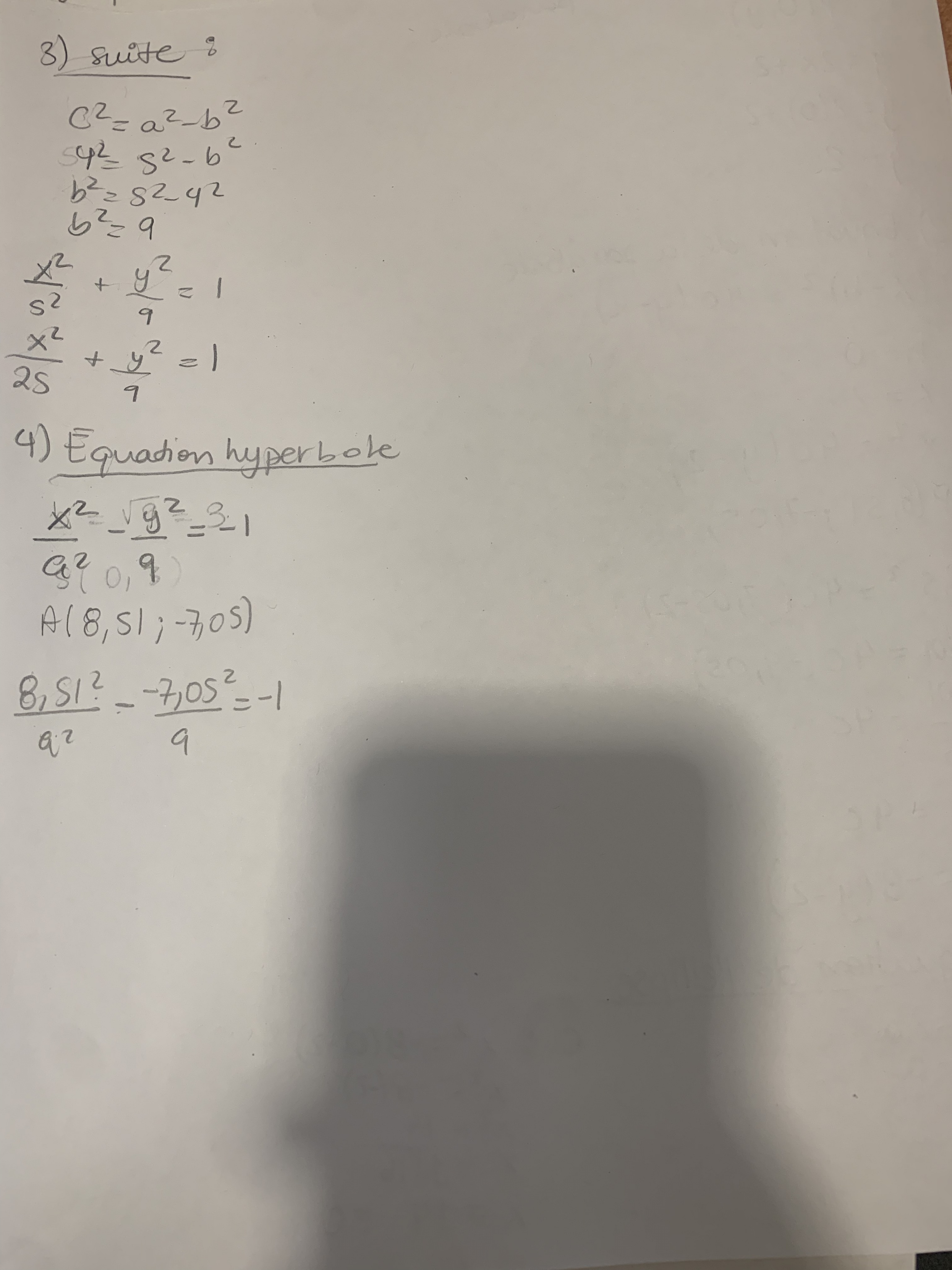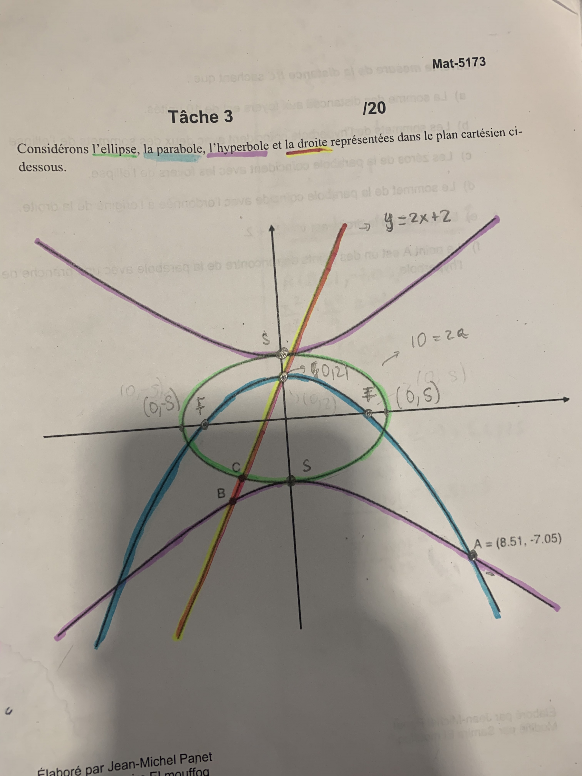Malheureusement, il nous manque d'informations sur le problème pour t'aider. Par contre, il est possible de déterminer que la valeur de b de l'hyperbole est égale à la valeur de b de l'ellipse.