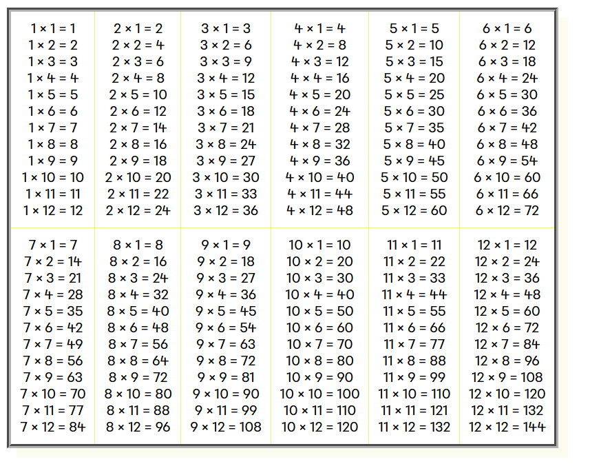 Voici la table des multiplications.