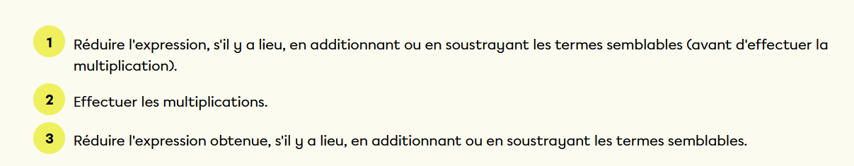 Pour multiplier des polynômes entre eux, il faut suivre certaines étapes.