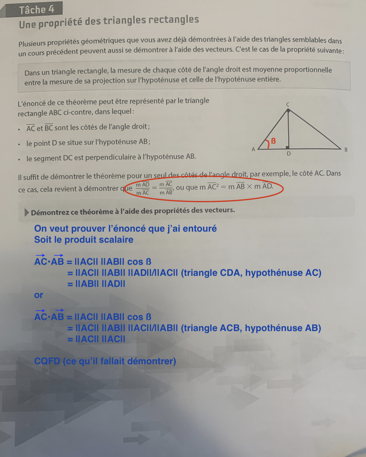 Je suggère que tu fasses de même pour l'autre cathète pour te pratiquer et bien maîtriser le problème.