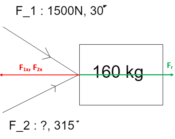 Finalement, nous avons deux cordes, une à 315 degrés et une autre à 30 degré. Pour équilibrer les forces, nous devons avoir les tensions dans le à l'opposée. Ainsi, je crois que pour la première corde la tension devrait être à 135 degré et 210 degré pour la deuxième, mais le corrigé indique 30 et 150.