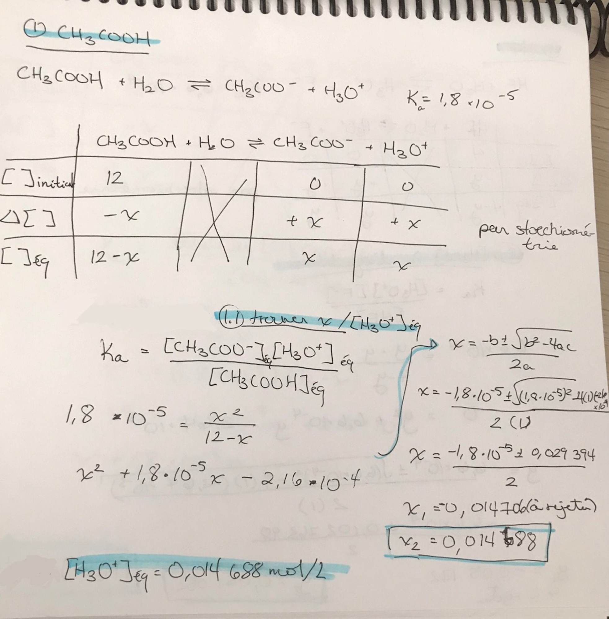 Alors, calcule le H3O+ lors de l'équilibre pour les deux produits. Voici une fiche qui pourrait t'aider.
