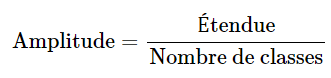 La première étape de ce problème est de déterminer l'amplitude des classes, c'est-à-dire la longueur de la classe. On utilise généralement cette formule pour déterminer la longueur de la classe :