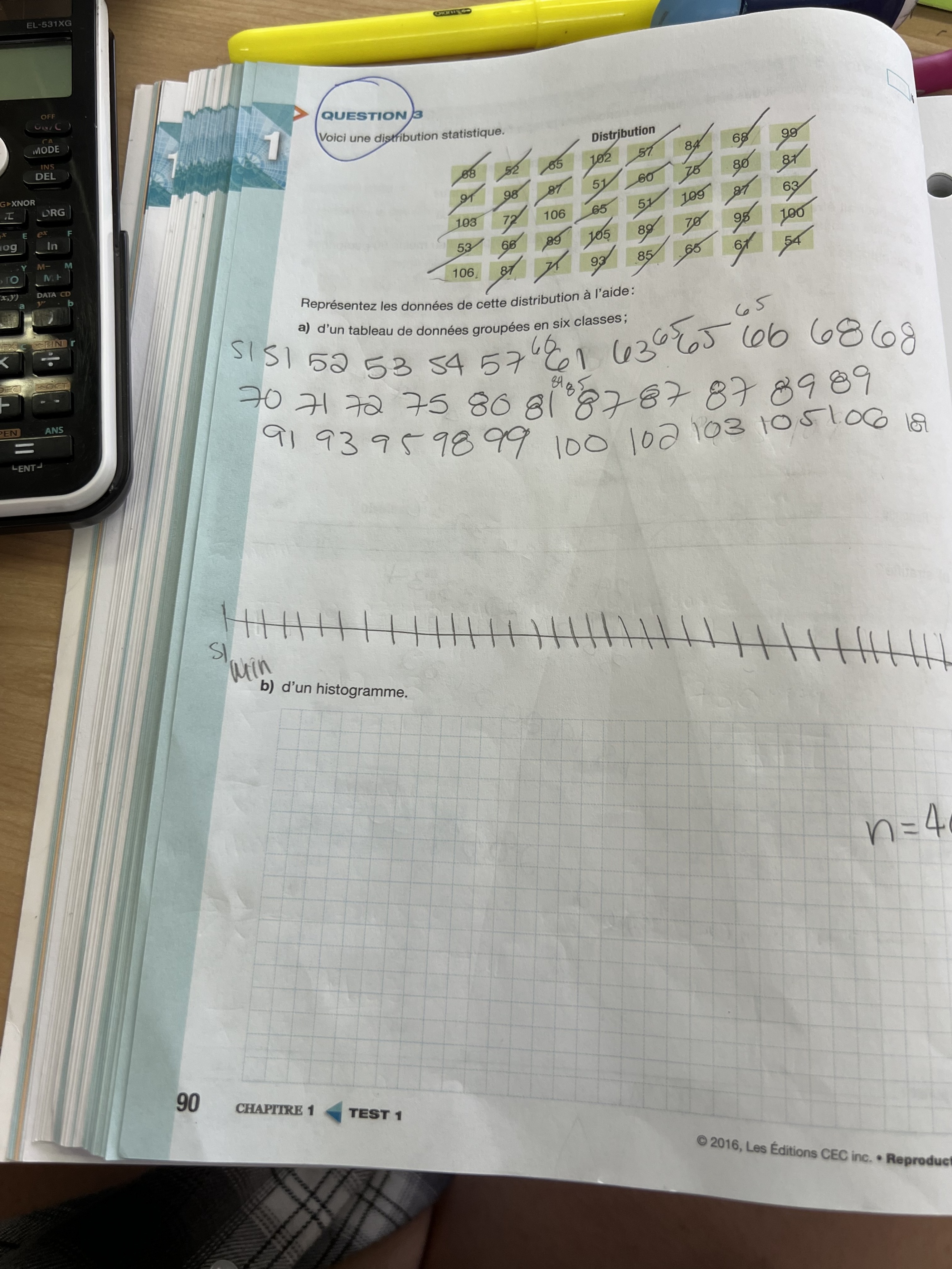 Voici une fiche qui t'explique comment faire l'histogramme à partir du tableau que tu vas obtenir en a).