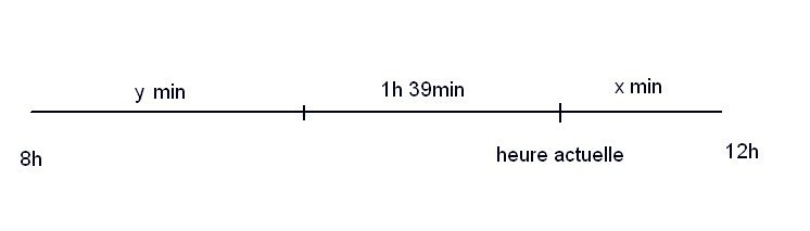 le nombre de minutes entre 8h et 1h39min avant l heure actuelle : y