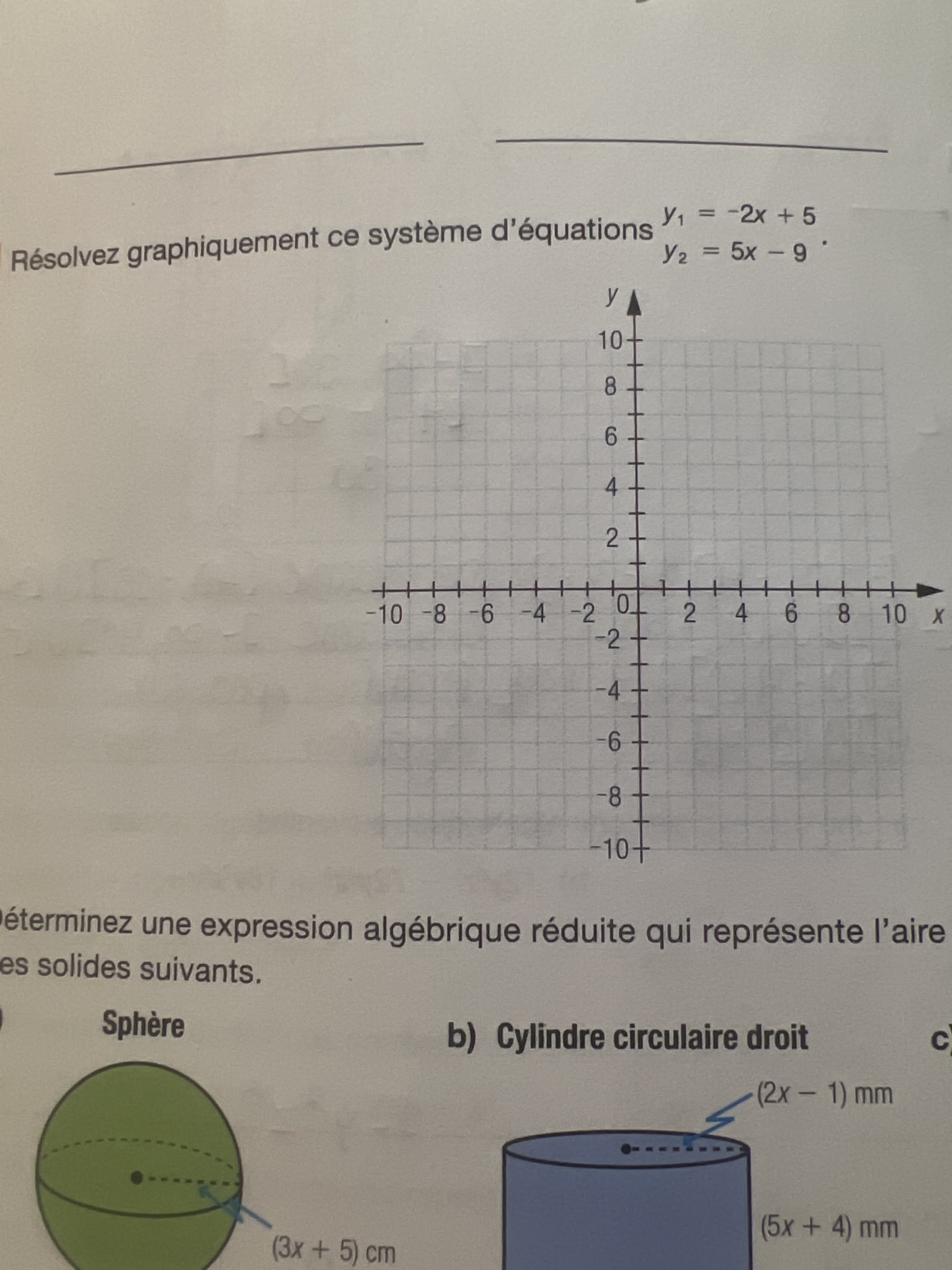 Tu dois dessiner tes deux équations sur le graphique et trouver graphiquement le point d'intersection.