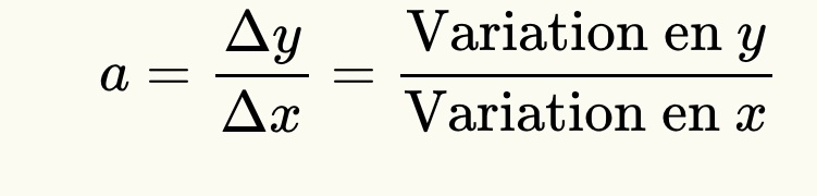 Ensuite, tu peux trouver un autre point du graphique à l’aide de la règle (ex calculer y pour x=1), le placer dans le graphique et relier les deux points tracés dans le graphique, ou tu peux utiliser le paramètre a et sa définition, soit :