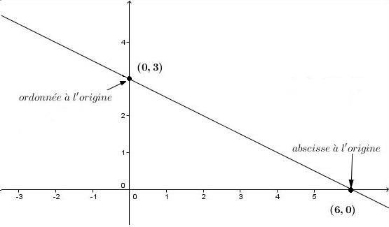 abscisse à l origine: valeur de x quand y=0.