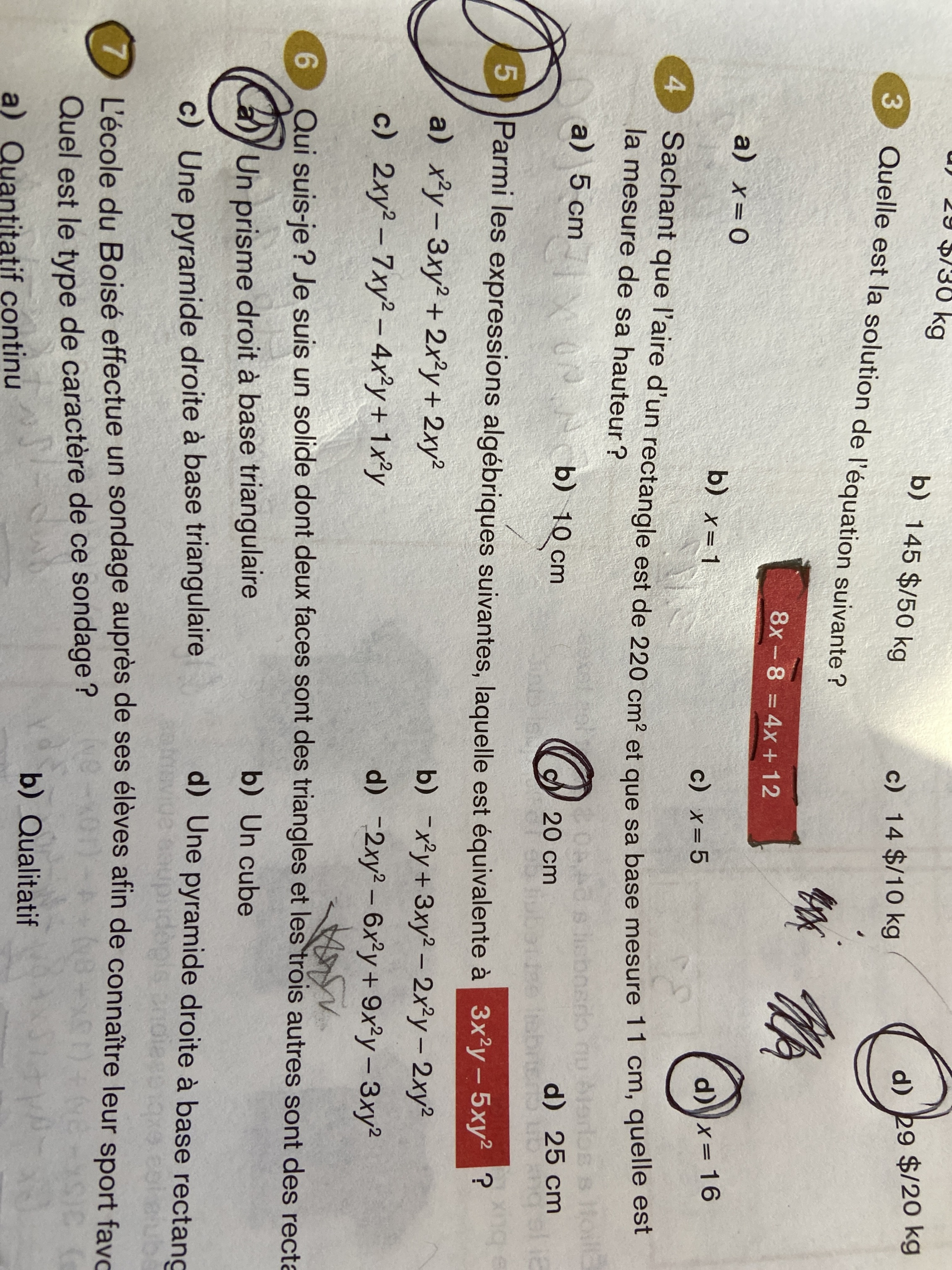 On réalise donc que l'expression algébrique en a) n'est pas équivalente à 3x^2y - 5xy^2.
