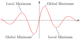 Une fonction peut avoir plusieurs sommets. Certains de ses sommets peuvent être des maximums et minimums relatifs (local), mais un seul minimum et un seul maximum absolue (global). Ces absolue ont les valeurs positives/négatives les plus extrêmes.