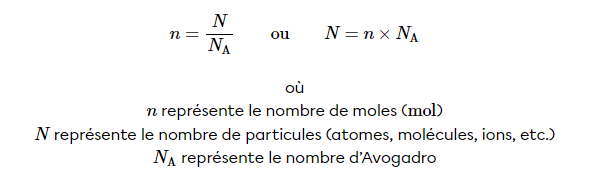 C'est en effet le bon calcul! Le nombre de moles est calculé en divisant un nombre de particules par le nombre d'Avogadro.