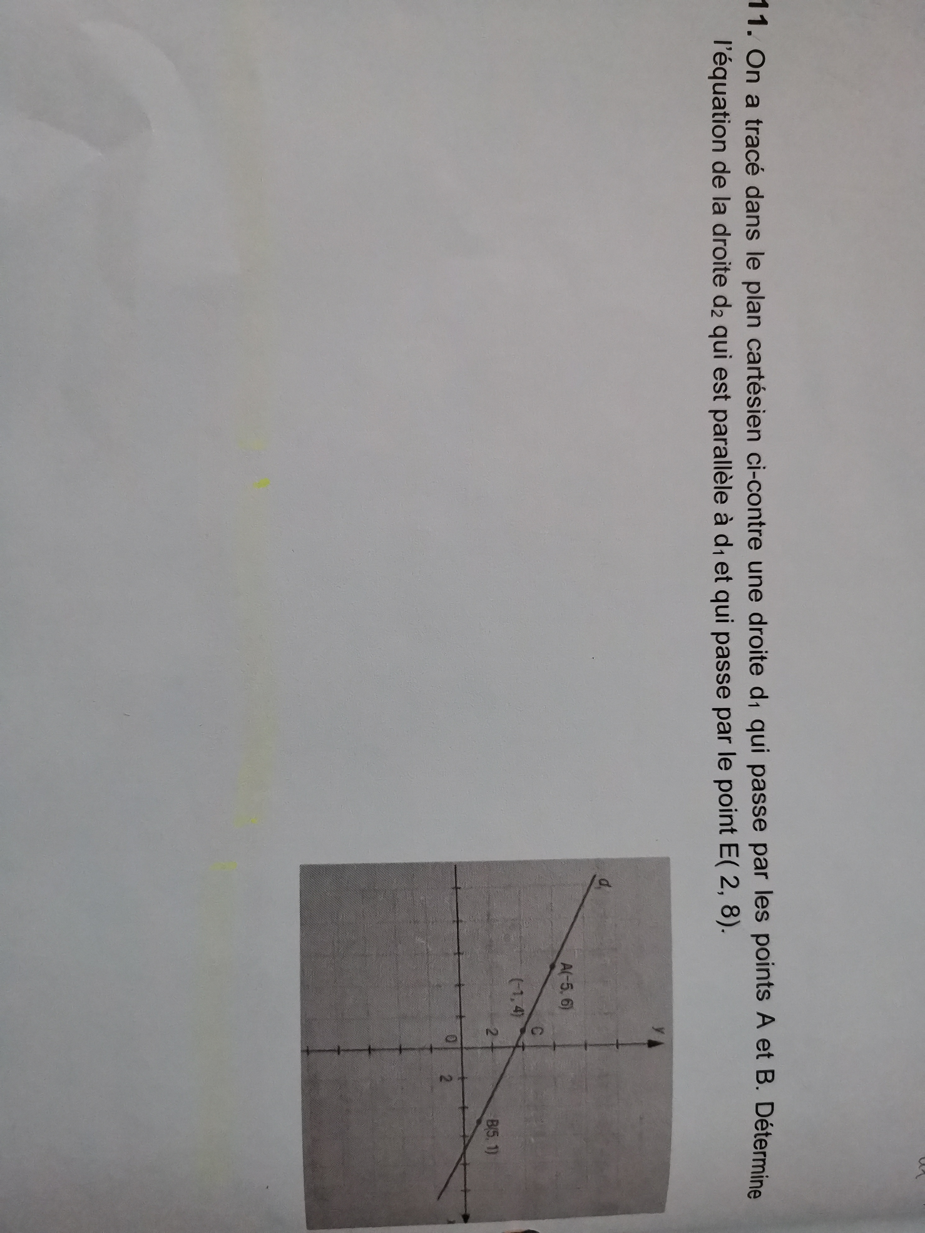 Tu dois trouver l'équation de la deuxième droite sachant qu'elle est parallèle à d1 et passe par (2,8)