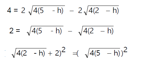 $$ (\sqrt{4(2-h)}+2)^2=(\sqrt{4(5-h)})^2$$