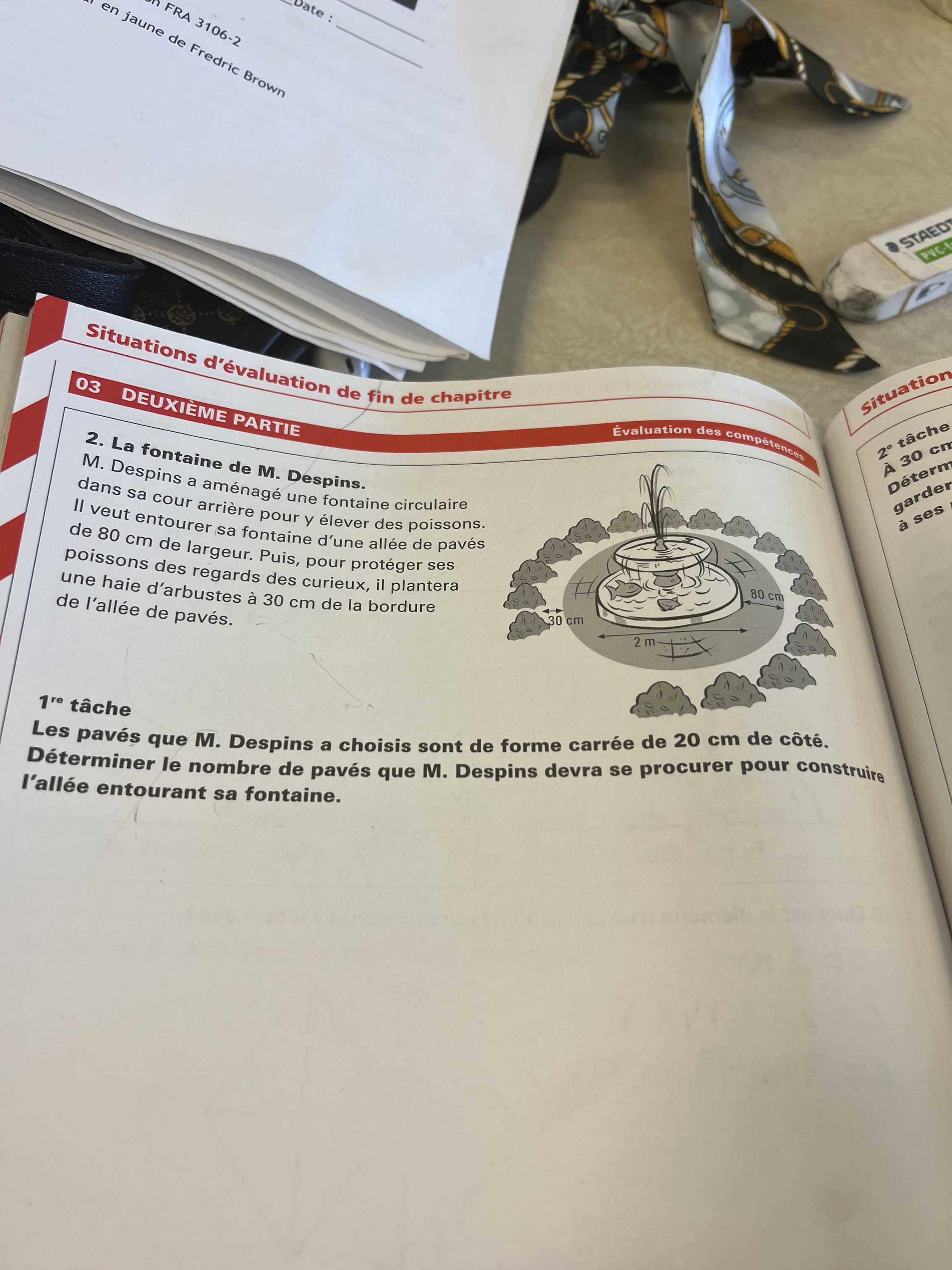 1) Tout d'abord, trouve l'aire total (fontaine + allée de pavée)