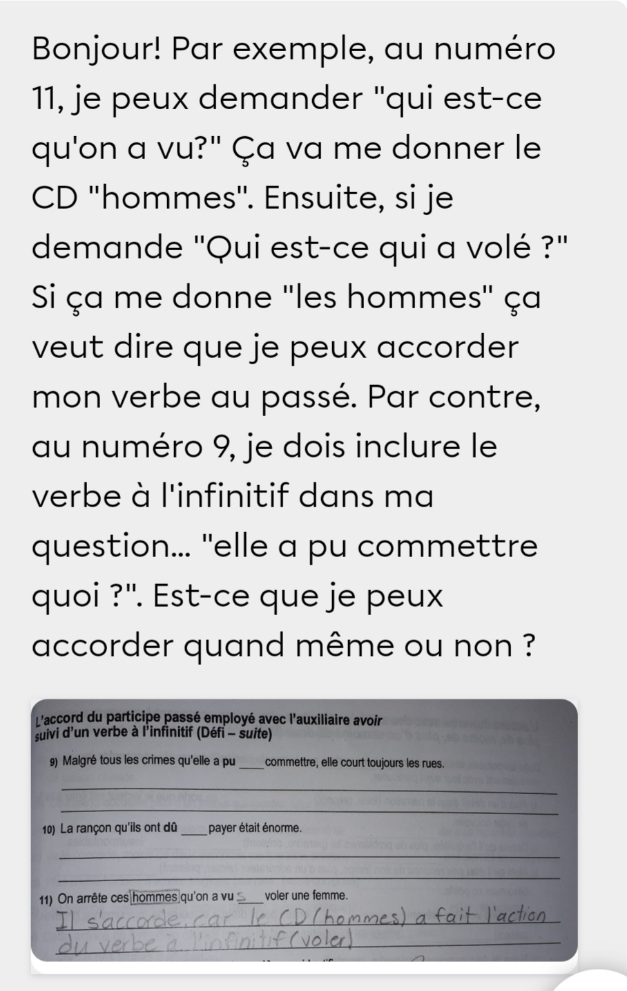 Bonjour! Ma question est plus détaillée sur la photo.. est-ce que je peux accorder au numéro 9 et 10? Si non, pourquoi ?