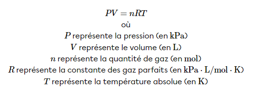 Pour ce faire, on peut utiliser la formule des gaz parfaits: