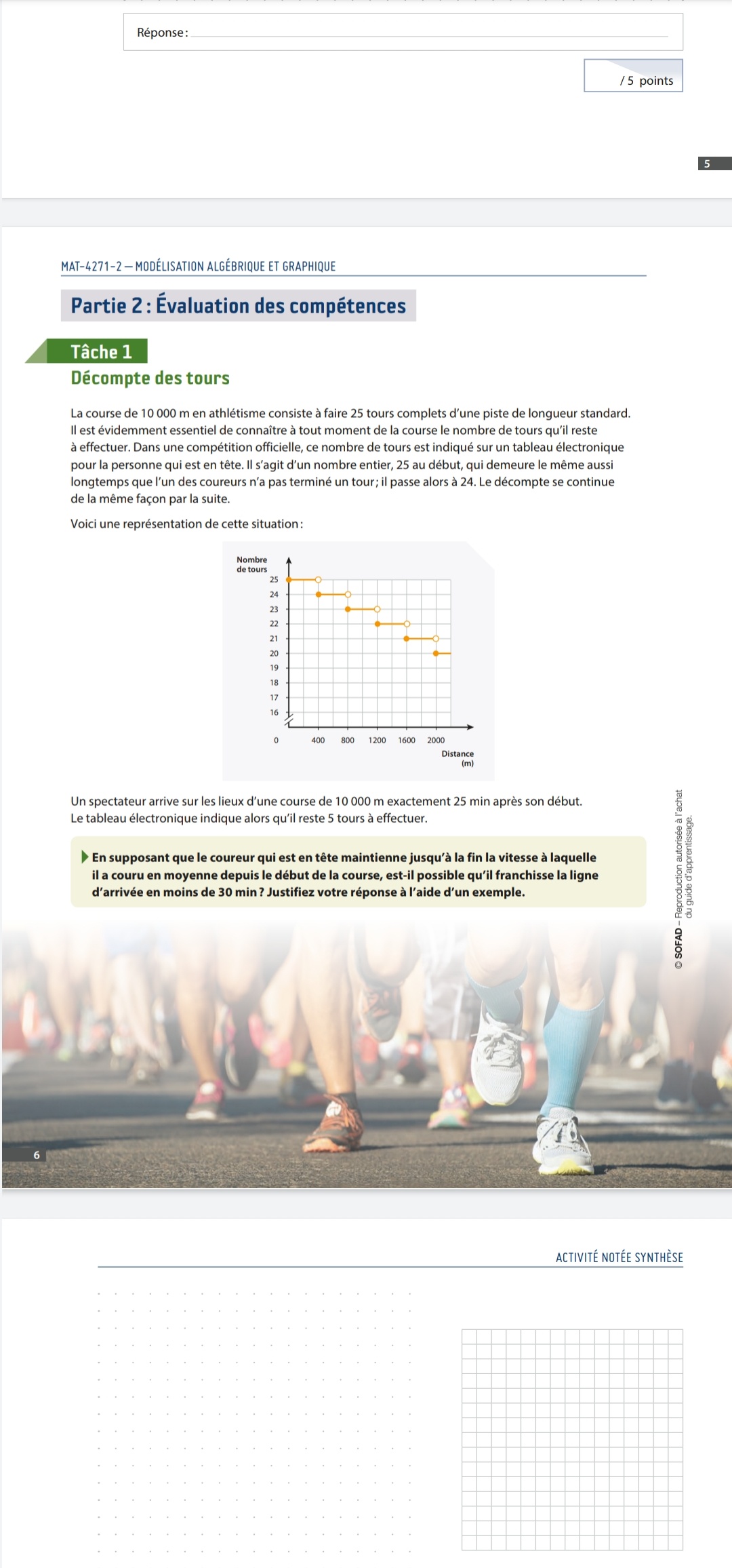Avec la règle de la fonction dont on a le graphique, on calcule l intervalle de distance courue quand le tableau indique 5 tours à effectuer : [ ? m, ? m[ .