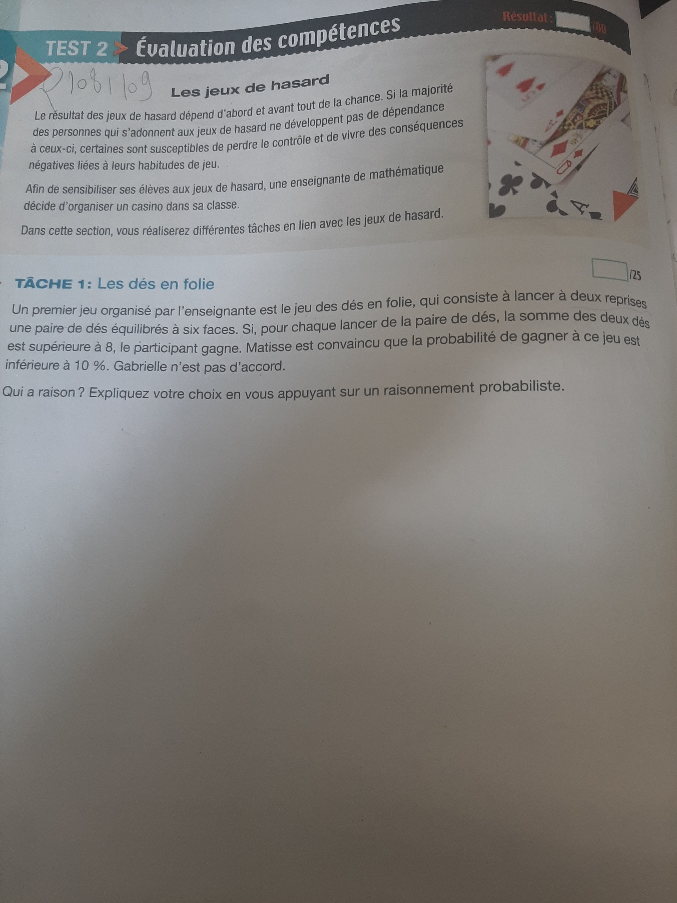 Pour la troisième page, la tâche 1 fait appel à une expérience aléatoire composée , car elle se réalise en plusieurs étapes.