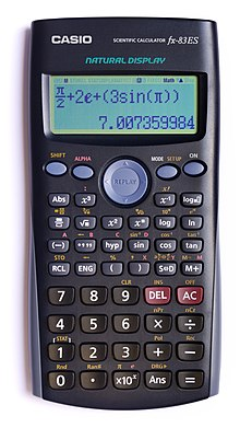 Tu dois d'abord cliquer sur shift, première touche ronde en haut à gauche en jaune, puis tu cliques sur la racine carrée, 2e touche rectangulaire à partir de la gauche et 2e touche rectangulaire à partir du haut. Le fait d'appuyer sur shift te permet d'accéder aux fonctions en jaune en haut des touches.