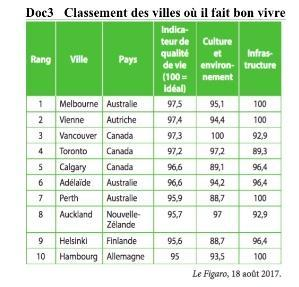 A quels ensemble géographique appartiennent les villes ayant la meilleure qualité de vie
