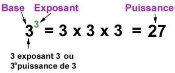 L’exposant est une multiplication répétée. Ex 3^3= 3 x 3 x 3= 27