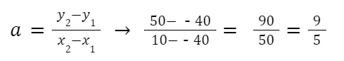 On trouve que le b est 32. L'équation finale de la droite est donc: